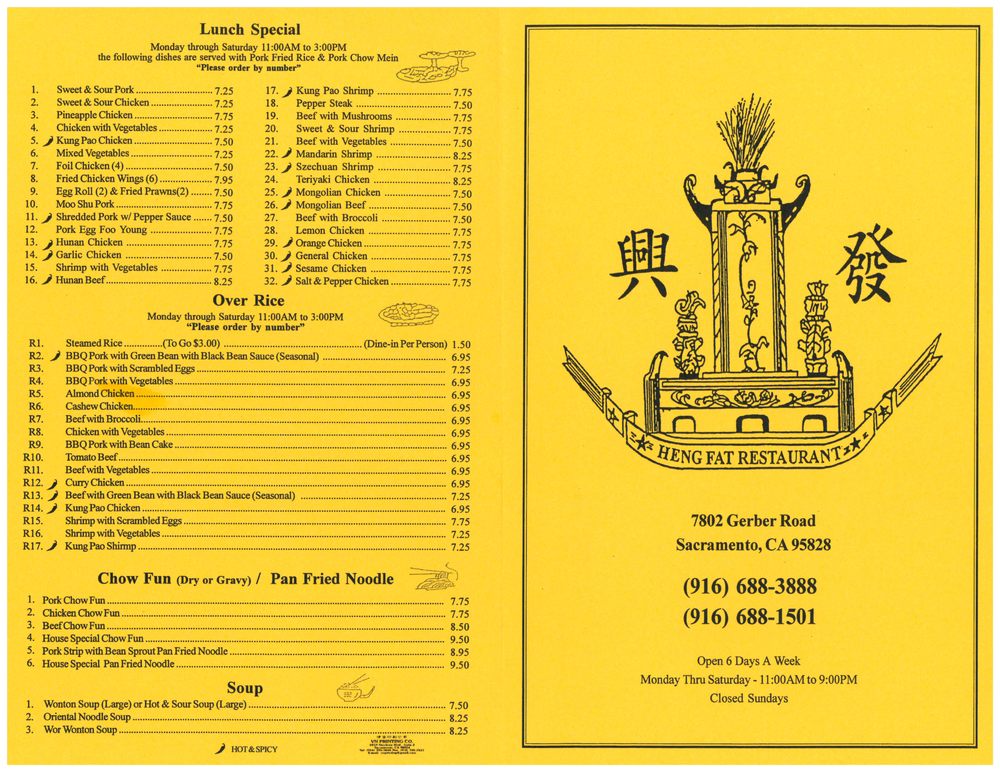 Welcome to Hengfat Restaurant, an exceptional destination for Chinese cuisine located at 7802 Gerber Rd, Sacramento, CA. This hidden gem delights diners with its extensive menu catering to all tastes, including a plethora of vegetarian options. Guests can enjoy a casual dining experience, complete with friendly waiter service and a warm atmosphere, perfect for families and groups alike.